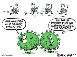 No es una “guerra” como los espadones nos quieren hacer creer, es una carrera de obstáculos ante una CRISIS SANITARIA, en que el contagio se extiende sin orden ni concierto, en que la muerte se sube a lomos del contagio superando los límites fronterizos y políticos, para entrar de lleno en el terreno sanitario.