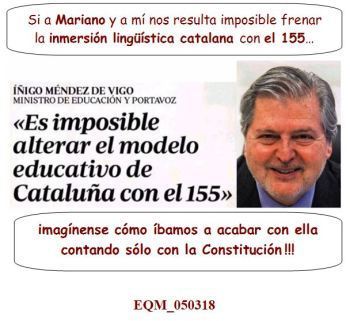 Apunta dos vertientes del “problema lingüístico, uno que en algunas zonas del área metropolitana (de Barcelona) son necesarias más clases en catalán, y otra, que hay puntos de la Cataluña interior donde los alumnos no alcanzan un buen nivel de castellano. En este último caso no te preocupes que para eso está el trifachito andaluz subvencionando el “desnivel” y conseguir la “igualdad” de peso de ambos idiomas.