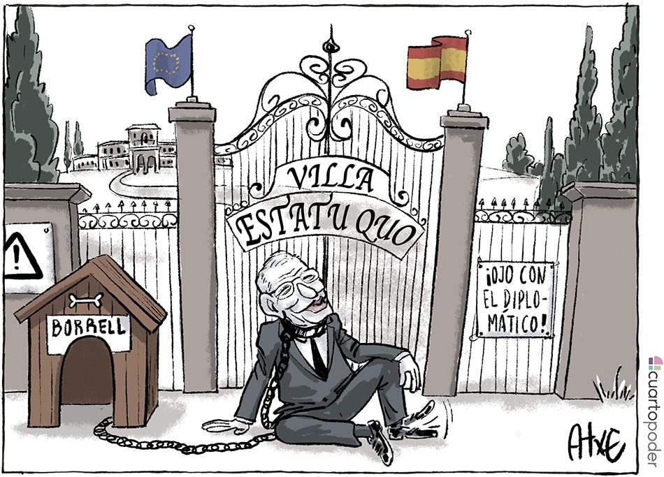 A lo que iba, que me estoy desviando. Ahora regresa el Guerrero del Antifaz, en la figura de BORRELL y sin careta, montando la segunda parte de su cruzada personal: “Dinamitar la política exterior del Govern Catalán”. Ahí es nada. Pero como no está muy clara la cosa, y para abrir boca, lo primero es comunicar a las autoridades internacionales que hay varias delegaciones catalanas, delegaciones, no embajadas, y sí, el ministerio de la cosa las espía, que después te vas de la lengua y lo cambias para confundir al personal, unas delegaciones recurridas ante los tribunales españoles. Porque reabrirlas después que el 155 las hubiera cerrado, requiere los permisos de varios ministerios, hecho que en otras comunidades no ocurre. Pero Catalunya “is different”. Los catalanes no son presuntos rebeldes, son rebeldes, no son presuntos sediciosos, son sediciosos, no son presuntos pacíficos, son violentos, porque así lo decide la Fiscalía que depende del ministerio de justicia, que depende del gobierno de España, que depende de un partido que no llega a asomar la cabeza al borde de la piscina, y todos juntos dependen de la corona, y hasta aquí puedo leer…